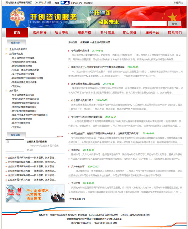 湘潭市開創咨詢服務有限公司網站(zhàn)文章(zhāng)列表頁效果圖