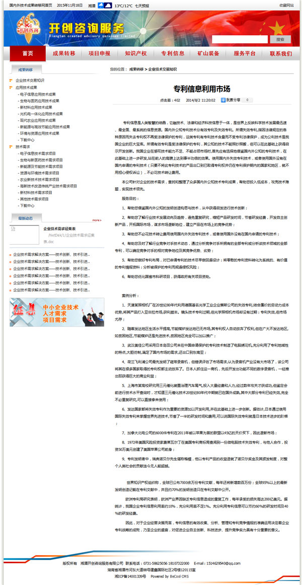 湘潭市開創咨詢服務有限公司網站(zhàn)文章(zhāng)終顯頁效果圖