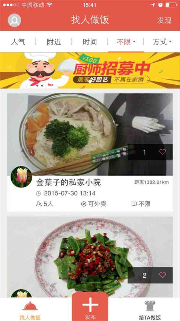 在家吃(chī):由深圳在家文化傳播有限公司策劃的一種集家廚、社交、賺錢爲一體(tǐ)的生(shēng)活類APP,旨在爲人(rén)們提供一個更爲方便舒心的“吃(chī)飯”平台,享受獨特的美味生(shēng)活。是一款集家廚、社交、收益爲一體(tǐ)的生(shēng)活服務類手機(jī)應用軟件(jiàn),主要面向兩個群體(tǐ):擁有好廚藝卻賦閑在家的社區阿姨或大(dà)叔以及身(shēn)處異鄉想吃(chī)家鄉菜又不想自(zì)己做飯的上班族。阿姨或大(dà)叔可(kě)通過手機(jī)客戶端發布自(zì)己的拿手菜以展示廚藝,賺取外快(kuài),吃(chī)貨可(kě)線上選擇做飯方式并預約廚師(shī)做飯。