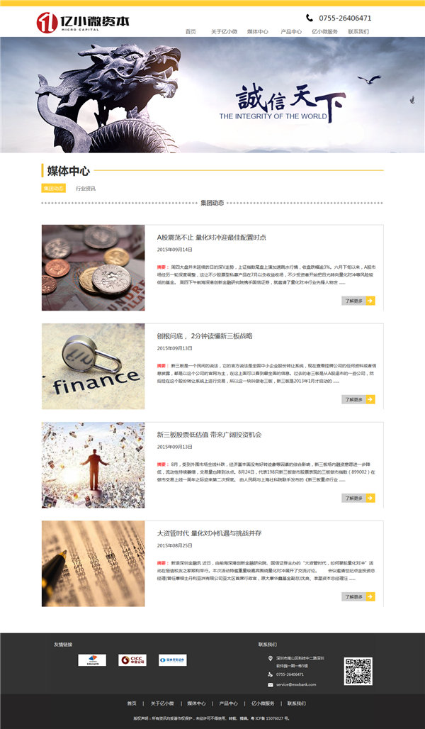 億小微資本管理(lǐ)網站(zhàn)文章(zhāng)列表頁效果圖