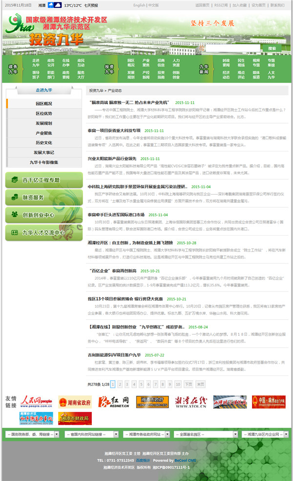 投資九華的主要欄目有:園區概況、産業聚焦、招商信息、人(rén)力資源、發展規劃、産經新聞、投資指南(nán)和創新創業。