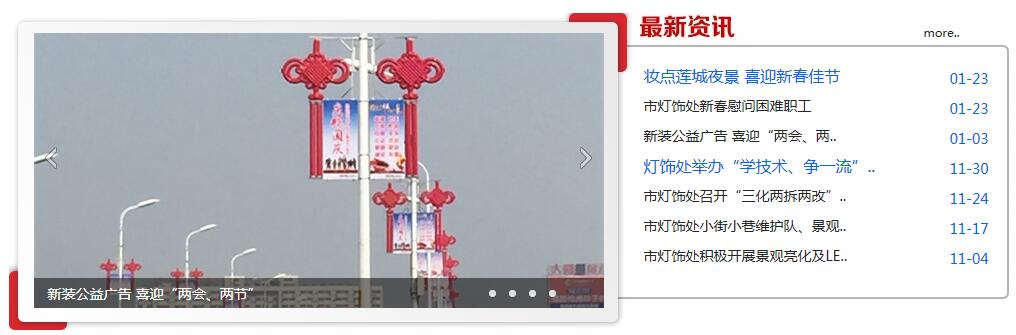 湘潭市燈飾管理(lǐ)處官方網站(zhàn)全權交由湘潭貝一科(kē)技有限公司設計(jì)制作(zuò)。以燈飾、亮麗爲主題,将視覺标志化,用視覺來(lái)增加官方的識别度,讓大(dà)衆在第一眼後就(jiù)能清晰的辨别出這是一個以燈飾爲主題的官方網站(zhàn),精美的美工(gōng)小細節圖如(rú)下: