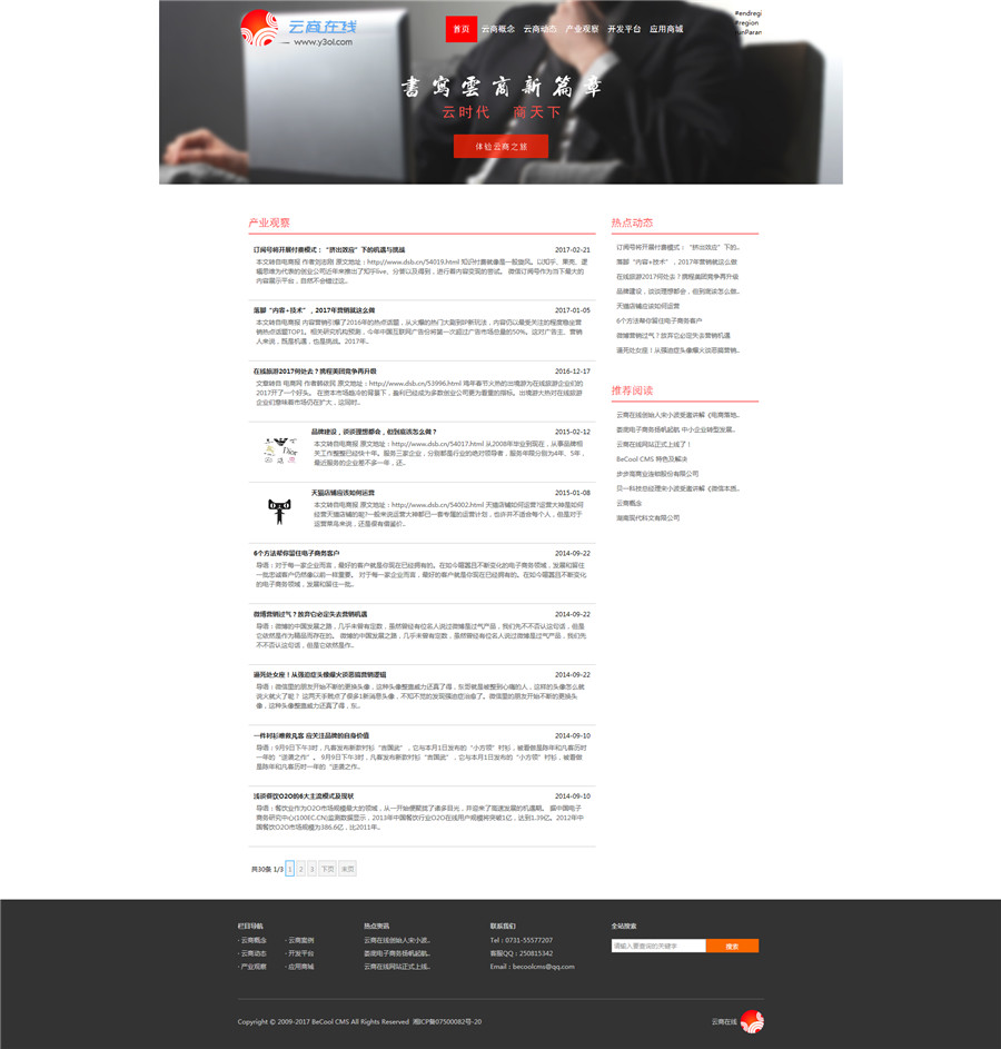 雲商在線官網欄目包含:雲商概念、雲商動态、産業觀察、發開平台和應用商城(chéng)。