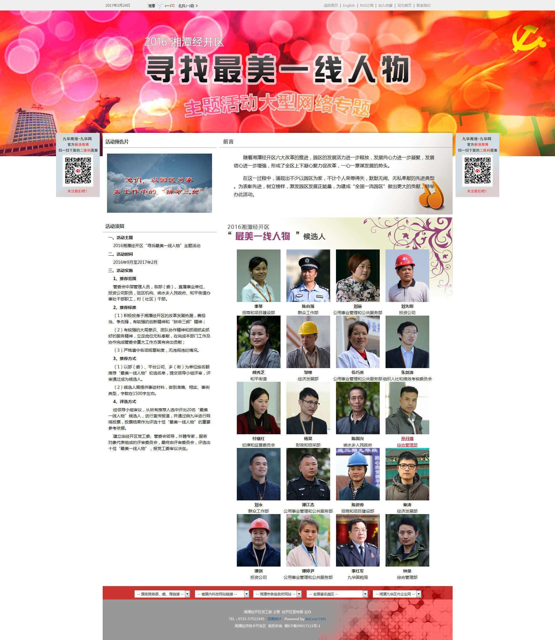 湘潭九華經開區官方網站(zhàn)“尋找最美一線人(rén)物”專題頁效果圖