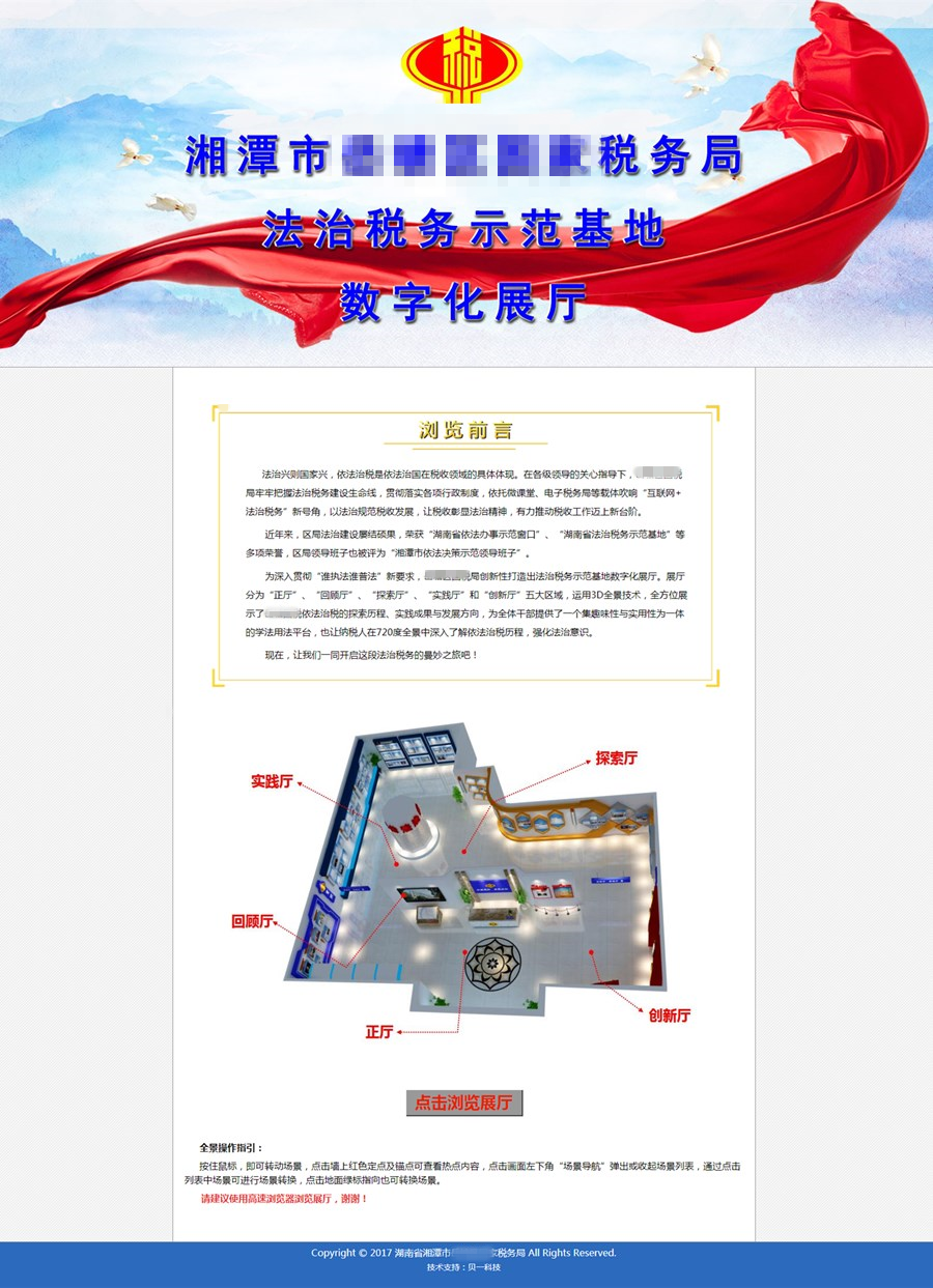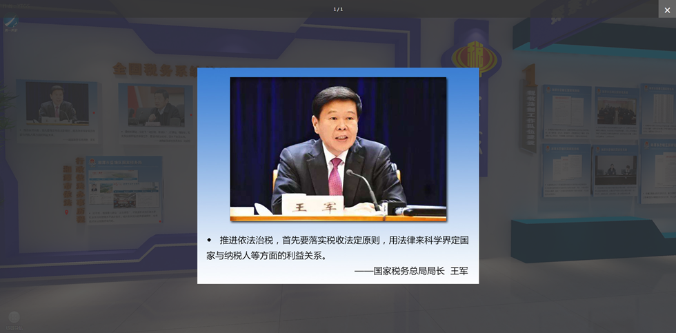 爲深入貫徹“誰執法誰普法”新要求,XXX國(guó)稅局創新性打造出法治稅務示範基地數字化展廳。展廳分(fēn)爲“正廳”“回顧廳”“探索廳”“實踐廳”“創新廳”五大(dà)區域,運用3D全景技術(shù),全方位展示了XXX國(guó)稅依法治稅的探索曆程、實踐成果與發展方向,爲全體(tǐ)幹部提供了一個集趣味性與實用性爲一體(tǐ)的學法用法平台,也讓納稅人(rén)在720度全景中深入了解依法治稅曆程,強化法治意識。