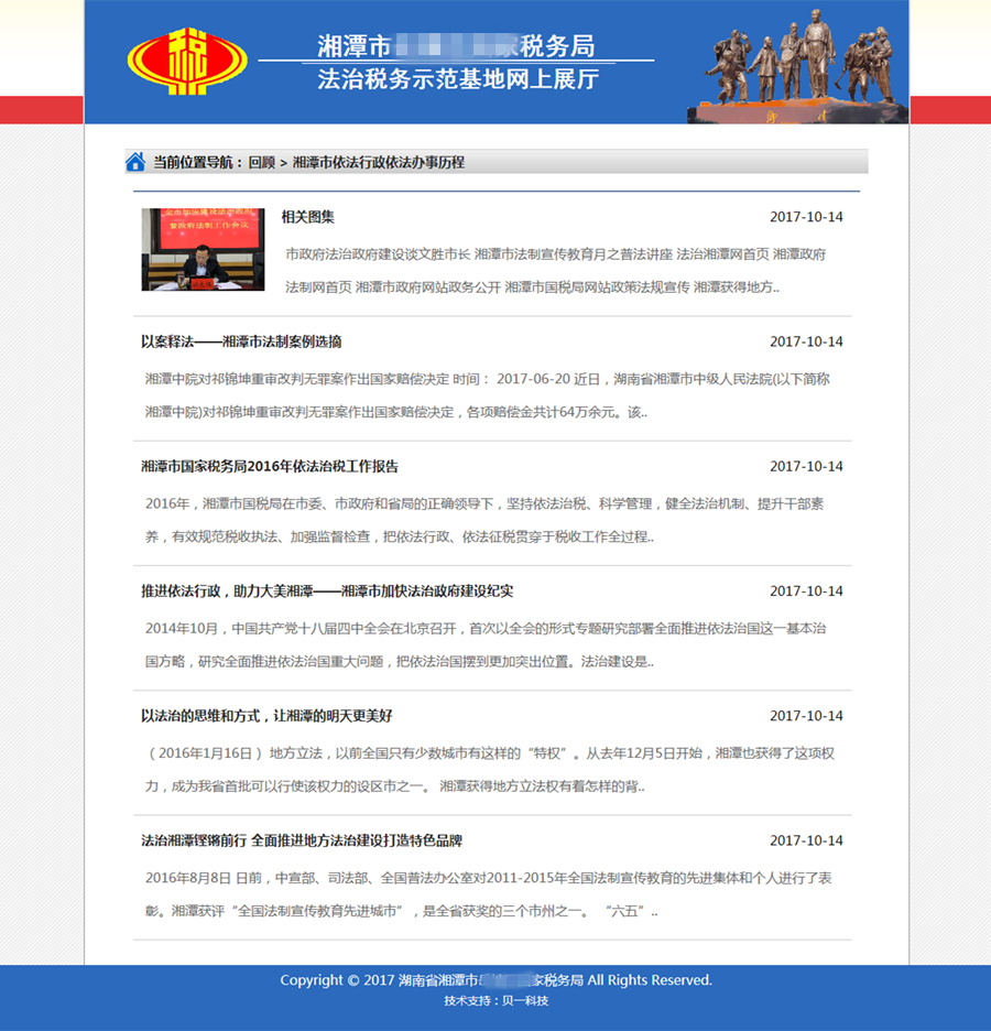近年(nián)來(lái),區局法治建設屢結碩果,榮獲“湖南(nán)省依法辦事(shì)示範窗(chuāng)口”、“湖南(nán)省法治稅務示範基地”等多項榮譽,區局領導班子也被評爲“湘潭市依法決策示範領導班子”。